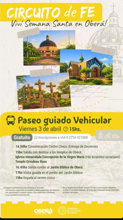 ✨En el marco de Semana Santa, Oberá invita a vivir una experiencia diferente: un recorrido pensado para la reflexión, el encuentro y el descubrimiento de la riqueza cultural y espiritual de la ciudad.