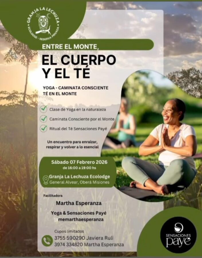 Una propuesta para bajar el ritmo, respirar profundo y volver a lo esencial, en pleno entorno natural de Granja La Lechuza Ecolodge. Un encuentro para conectar con el cuerpo, la tierra y los sentidos, rodeados de monte y calma.