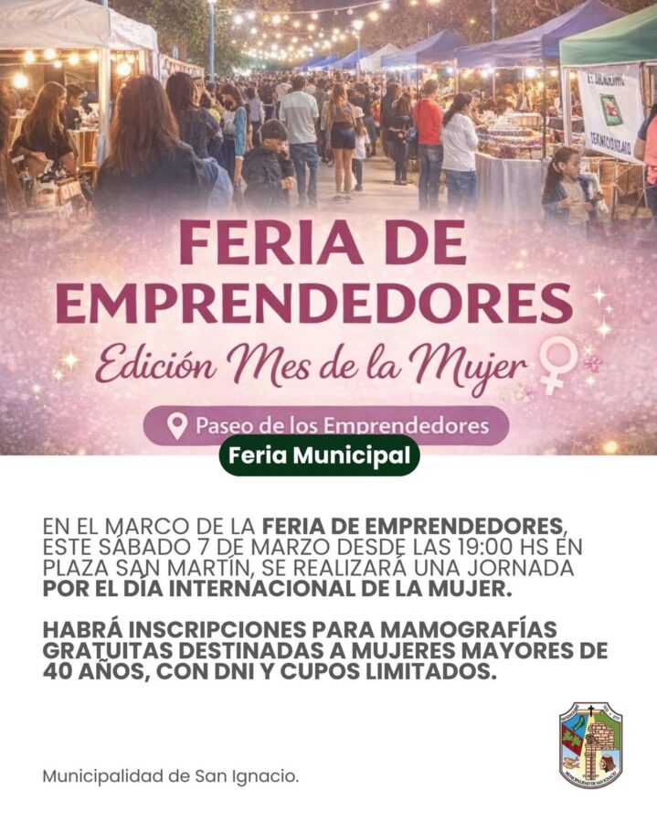 💜 Una jornada especial para celebrar el talento, la creatividad y el trabajo de mujeres emprendedoras. En el marco del Mes de la Mujer, esta feria invita a recorrer stands, apoyar la producción local y disfrutar de una noche llena de propuestas.
