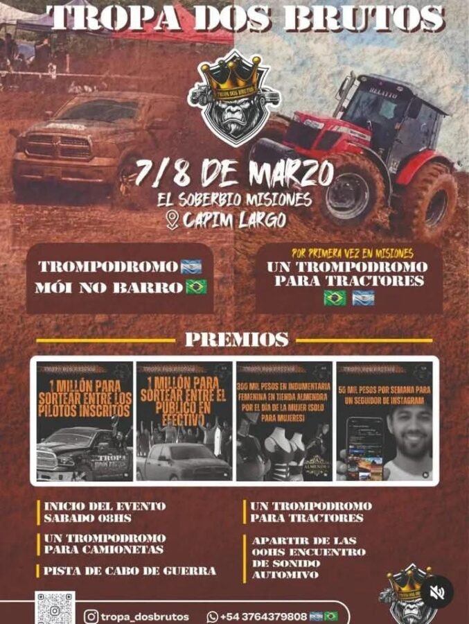 🚜🔥 Llega un evento diferente para los fanáticos de los motores y el barro. “Tropa Dos Brutos” propone un encuentro cargado de adrenalina con camionetas y tractores como protagonistas, donde la potencia, la destreza y el espectáculo se viven a pleno.