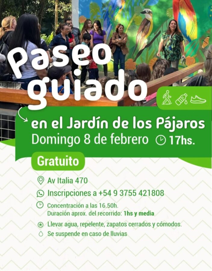 El Jardín de los Pájaros de Oberá te invita a una experiencia guiada distinta, donde podrás observar la vida silvestre en su hábitat natural, escuchar los sonidos del monte y conectar con la magia de la naturaleza.