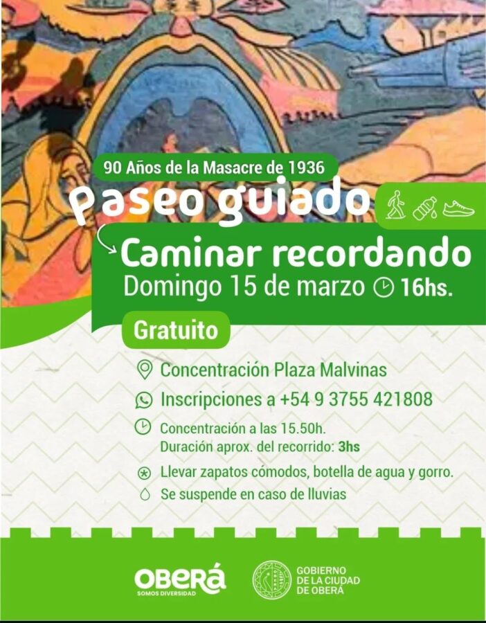🚶♂️ Una caminata histórica para reflexionar, aprender y mantener viva la memoria colectiva. En el marco de los 90 años de la Masacre de 1936, esta propuesta invita a recorrer distintos puntos emblemáticos de la ciudad, compartiendo historia, cultura y memoria.