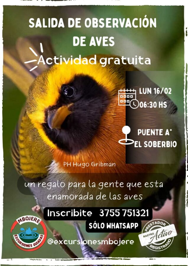 La jornada comienza temprano con salida de observación de aves en las Sierras del Chapá.