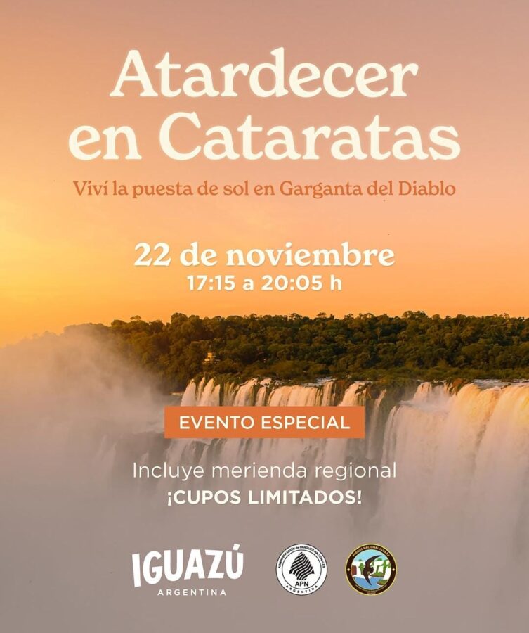 Contemplá la puesta de sol en la majestuosa Garganta del Diablo, rodeado por la bruma, el sonido del agua y la energía vibrante de la selva.