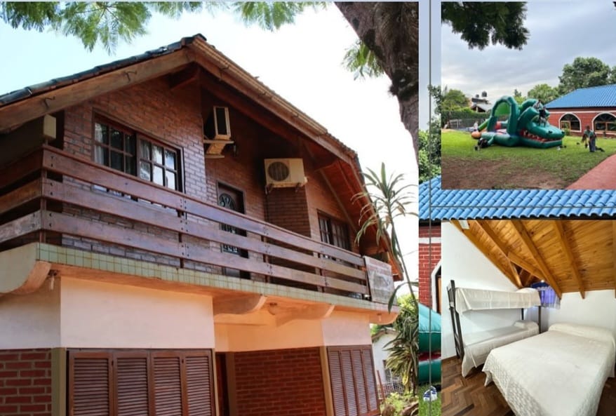 5 Habitaciones para 4 personas, y 1 habitación para 8 personas, además estacionamiento interno, quincho, cocina, parrilla, wifi, piscina y salón de eventos y espacio coworking.